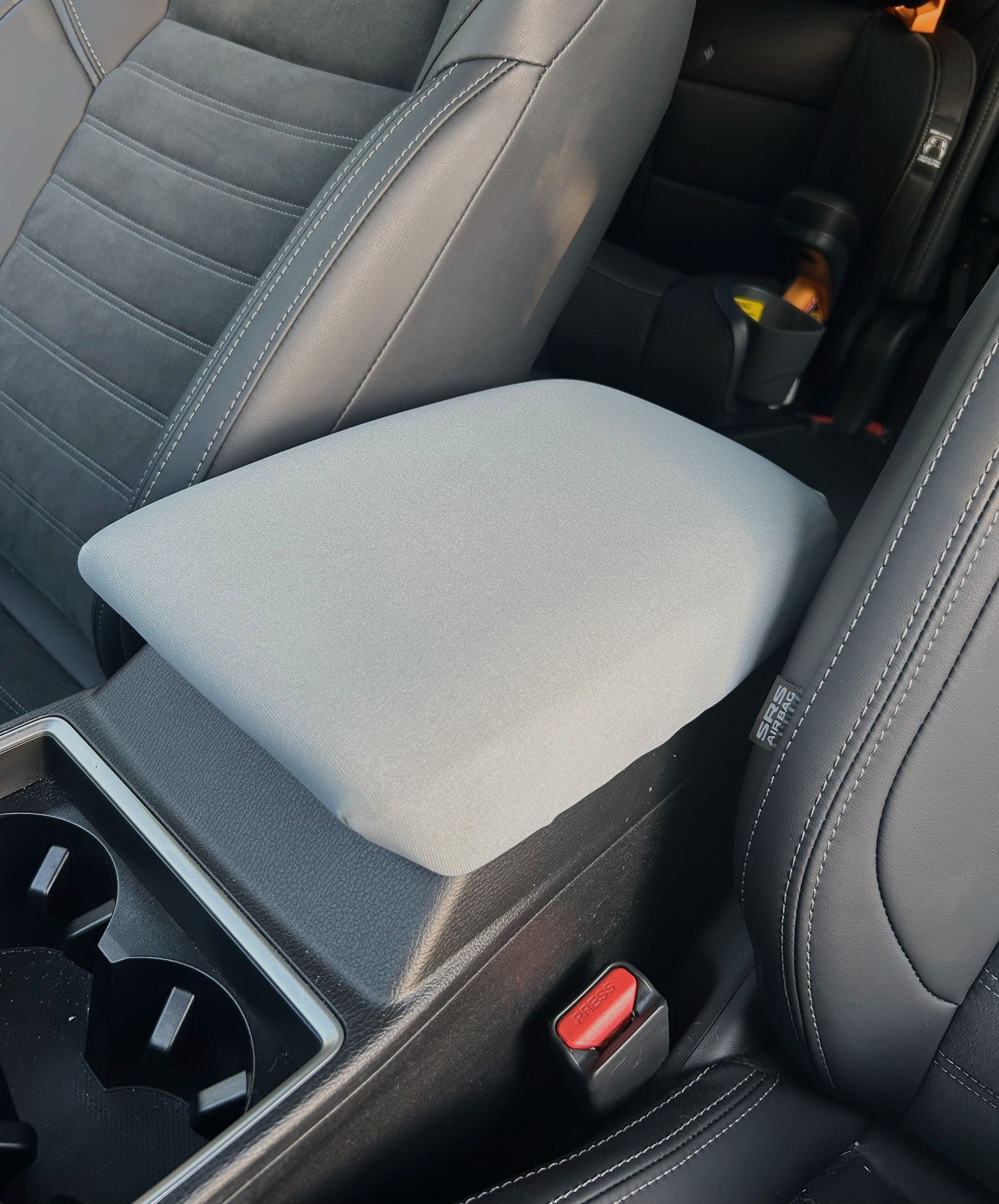 Our cover is made to fit over your existing center console armrest lid cover.